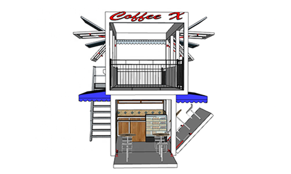 Ứng dụng: Ngoài thiết kế làm container café sản phẩm còn được ứng dụng làm container phòng ở, container nhà bếp, container phòng tắm, văn phòng, container cửa hàng, cabin bảo vệ,…